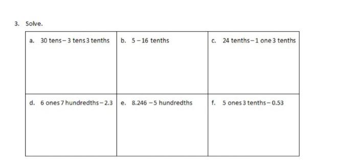 Solved 3 Solve A 30 Tens 3 Tens 3 Tenths B 5 16 Tenths Chegg Com